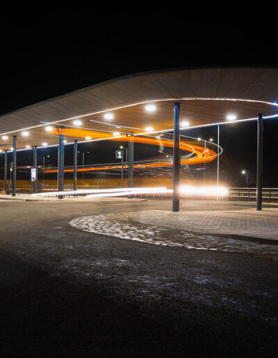 Novostavba dopravní infrastruktury v Hronově zahrnuje vybudování nového autobusového nádraží vč. zastřešených autobusových zastávek, přechody pro chodce. Součástí novostavby jsou zpevněné manipulační plochy, komunikace, chodníky, parkovací plochy a sadové úpravy.